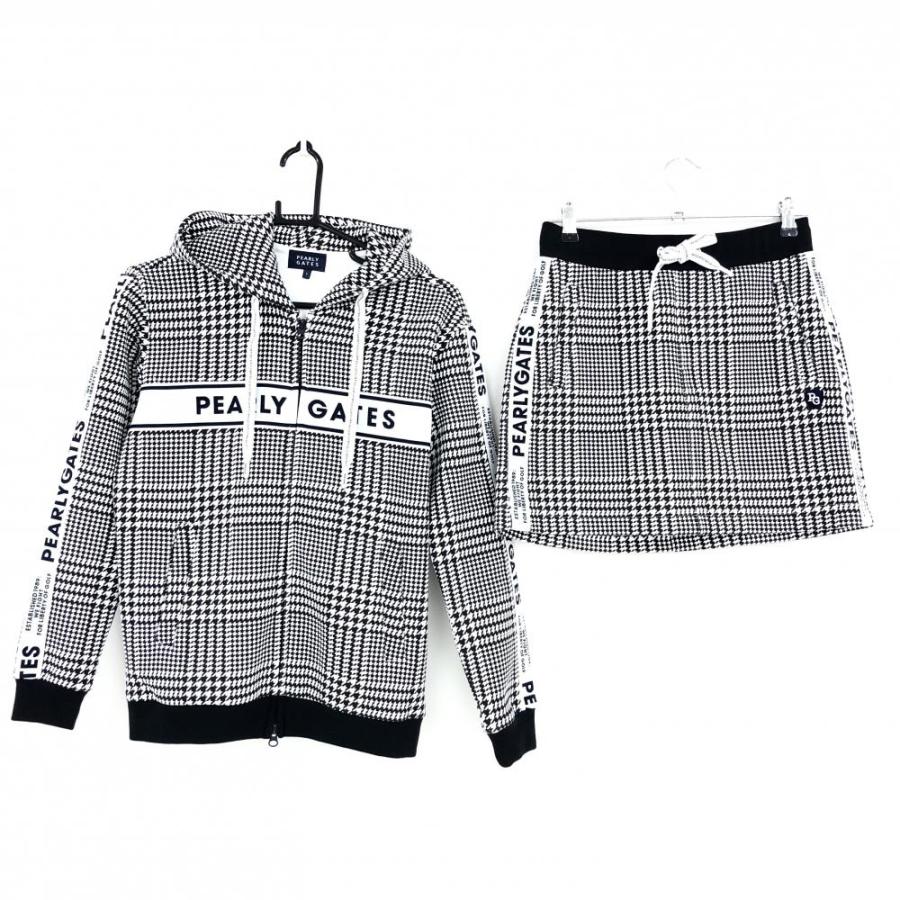 - ゴルフ > レディースウェア > Pearly gates パーリーゲイツ セットアップ パーカー スカート ロゴ 超美品】パーリーゲイツ 上下セット(ジップパーカー×スカート) 黒×白